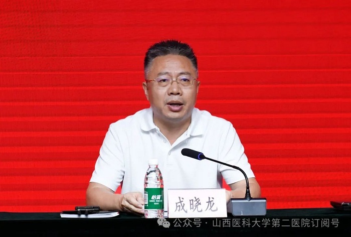 成曉龍書記代表院黨委,向獲獎醫(yī)師致以熱烈祝賀,并向全院醫(yī)師和醫(yī)務(wù)工作者致以誠摯的節(jié)日問候。他深情回顧了二院人薪火相傳、不懈奮斗的輝煌歷程,并強(qiáng)調(diào),正是一代又一代二院人團(tuán)結(jié)拼搏、接續(xù)奮斗,不斷拓展醫(yī)療服務(wù)的廣度與深度,推動醫(yī)院高質(zhì)量發(fā)展邁出堅(jiān)實(shí)步伐,生動詮釋了“大醫(yī)精誠”的深刻內(nèi)涵,為守護(hù)人民生命健康筑起了堅(jiān)不可摧的防線。他進(jìn)一步勉勵全院醫(yī)師及醫(yī)務(wù)工作者,要深入學(xué)習(xí)貫徹黨的二十屆三中全會精神,強(qiáng)化政治引領(lǐng),提升思想認(rèn)識,將黨的光輝旗幟高高飄揚(yáng)在守護(hù)人民健康的最前沿;要持續(xù)錘煉專業(yè)本領(lǐng),追求卓越醫(yī)術(shù),強(qiáng)化醫(yī)德醫(yī)風(fēng)建設(shè),為患者提供更加精準(zhǔn)、高效、溫暖的醫(yī)療服務(wù);要牢記為民初心,勇于擔(dān)當(dāng)責(zé)任,積極投身醫(yī)院發(fā)展建設(shè),用實(shí)際行動踐行“人民至上、生命至上”的崇高理念,為健康中國、健康山西的建設(shè)貢獻(xiàn)新的更大力量。