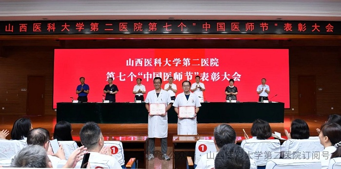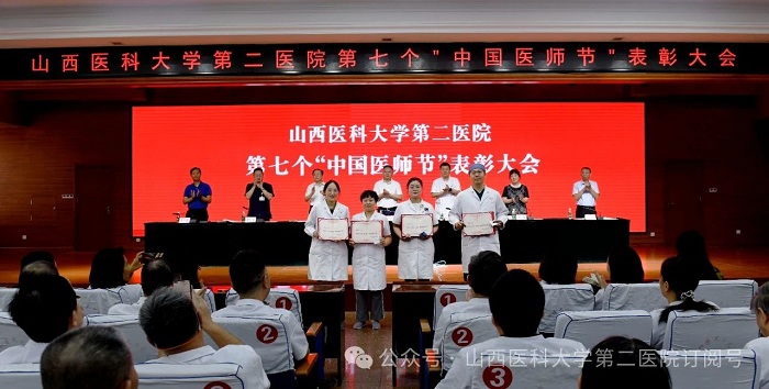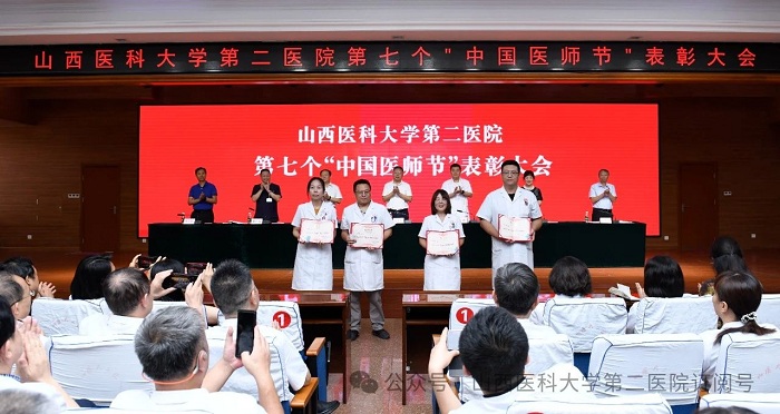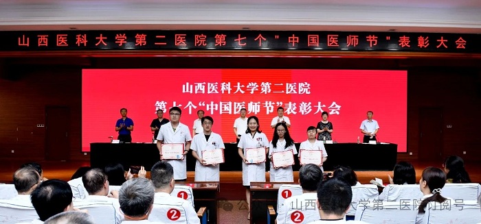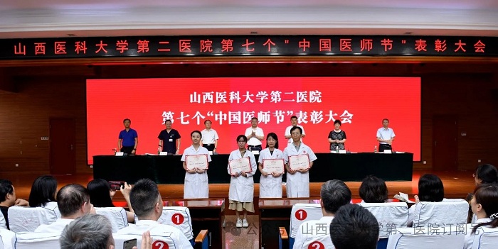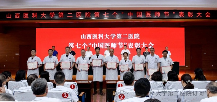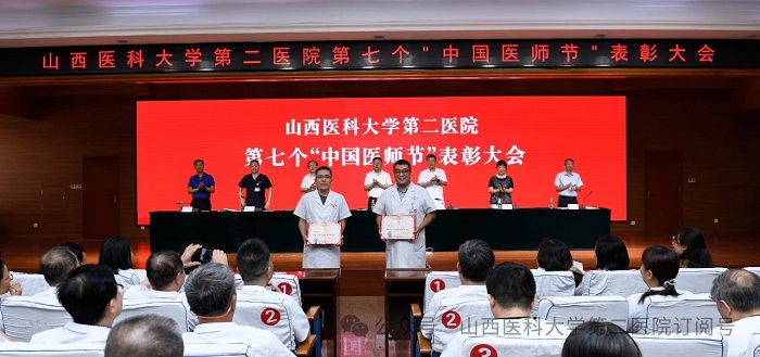 崇尚人文精神,彰顯醫(yī)者仁心。為弘揚(yáng)醫(yī)者無私奉獻(xiàn)、救死扶傷的高尚情操,激發(fā)全院醫(yī)師的職業(yè)自豪感與使命感,8月22日下午,山西醫(yī)科大學(xué)第二醫(yī)院在影像樓六層大學(xué)術(shù)報告廳召開第七個“中國醫(yī)師節(jié)”表彰大會,對在醫(yī)院醫(yī)療工作中表現(xiàn)突出的醫(yī)師進(jìn)行集中表彰。全體院領(lǐng)導(dǎo)出席會議,各黨支部書記、科主任、護(hù)士長和受表彰人員代表參加會議。
