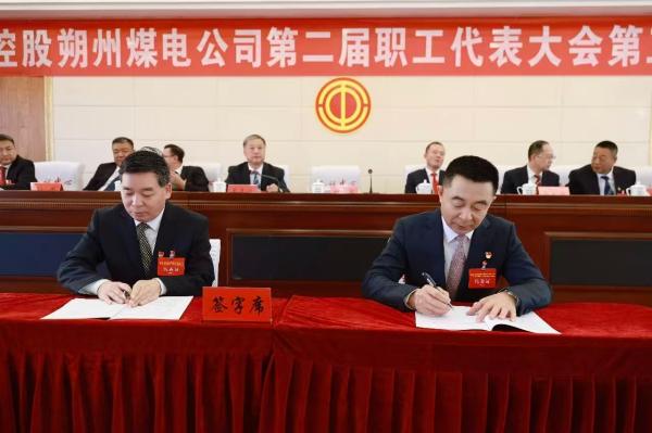 會議期間,田軍代表公司行政方,與公司工會副主席祝書林代表的職工方,共同簽訂了朔州煤電公司2026年《工資集體合同》,切實維護職工合法權益。同時,鄧建飛代表朔州煤電公司,與小峪煤業公司、王坪煤業公司、南陽坡煤礦、增子坊煤礦、千井煤業公司及和煦新能源公司6家下屬單位負責人現場簽訂2026年《經營業績責任書》,層層壓實責任,確保年度目標落地見效。