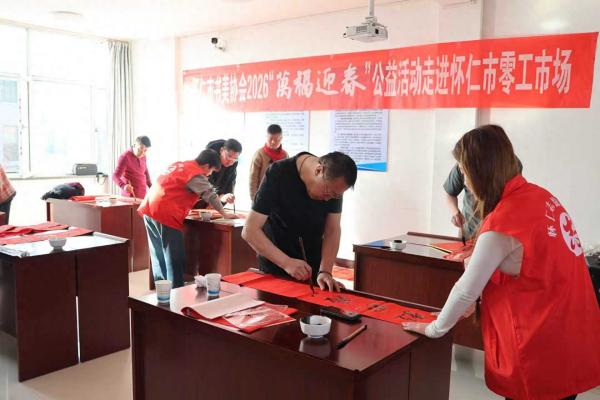 歲末春將近,墨香潤人心。1月28日,懷仁市人社局、市文聯(lián)、市新時代文明實踐中心聯(lián)合懷仁市書美協(xié)會,在懷仁市零工市場開展2026“萬福迎春”公益活動。活動以筆墨為紐帶,聚焦戶外零工群體,將中華優(yōu)秀傳統(tǒng)文化傳承與基層民生關(guān)懷精準對接,為寒冬里的零工工作者送上新春祝福。