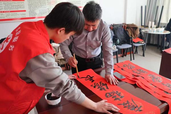 活動現(xiàn)場墨香縈繞、暖意融融,數(shù)位書法愛好者凝神揮毫、筆勢靈動,楷書、行書、隸書等多種書體各展風姿,一筆一劃間盡顯筆墨功底。剛勁有力、瀟灑飄逸的字跡躍然紅紙上,一副副寓意吉祥如意的春聯(lián)、一個個飽含美好期許的“福”字,迅速化作承載著新春暖意的專屬禮物。